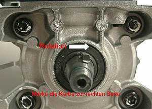Bei kolbengesteuerten Motoren, Chung Yung oder Zenoah ist der Rocket Key immer so einzubauen, dass die Kerbe in Rotationsrichtung zeigt.